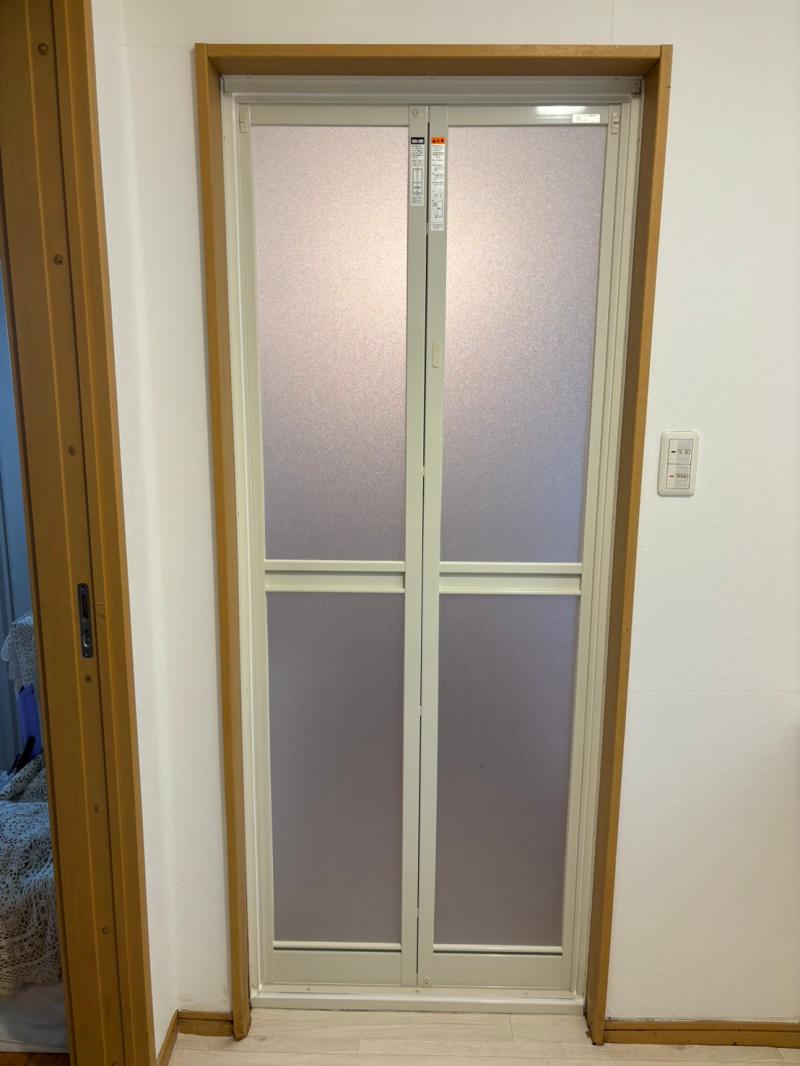 浴室の折戸取り換え工事の施工例です。 古くなり閉まりも悪く 取り換えのご希望でした。 ユニットバスなので枠ごと取り替えるわけにもいかず、 枠を残しそこ...