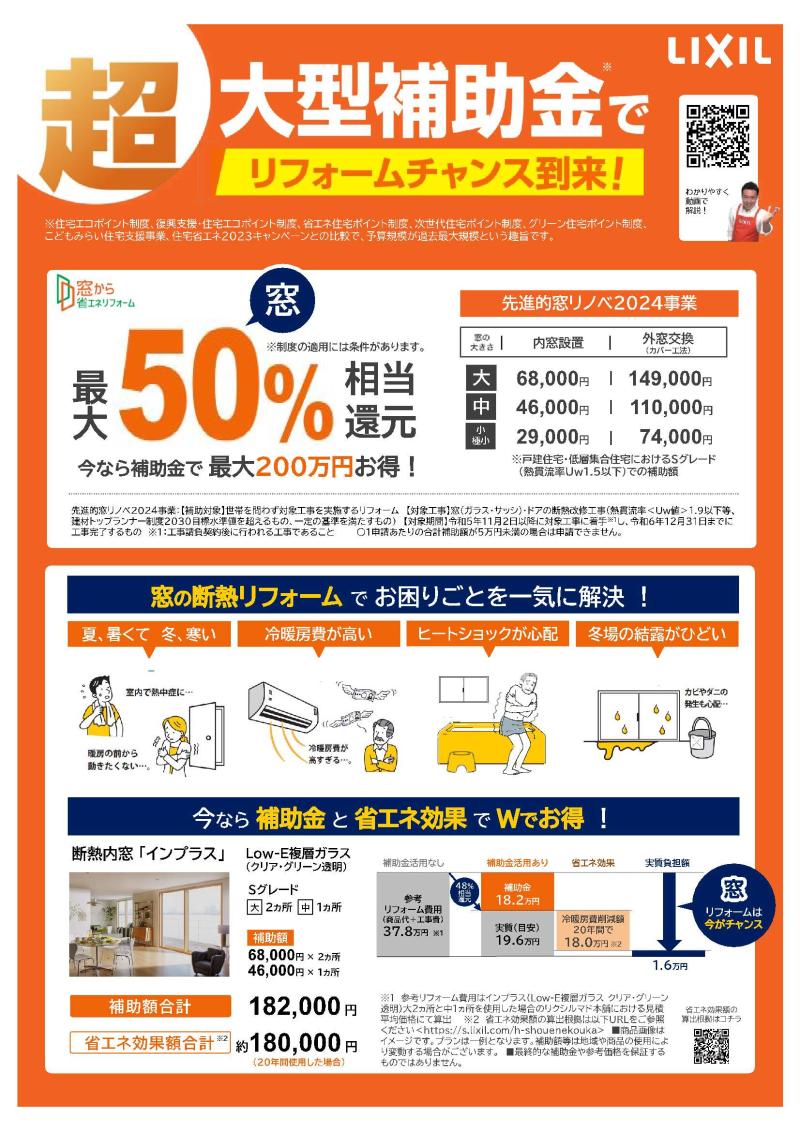 2024年 住宅省エネキャンペーンが始まりました!! ご要望・お見積もお気軽にお問い合わせください。 窓リフォーム おすすめ LIXIL インプラス(...