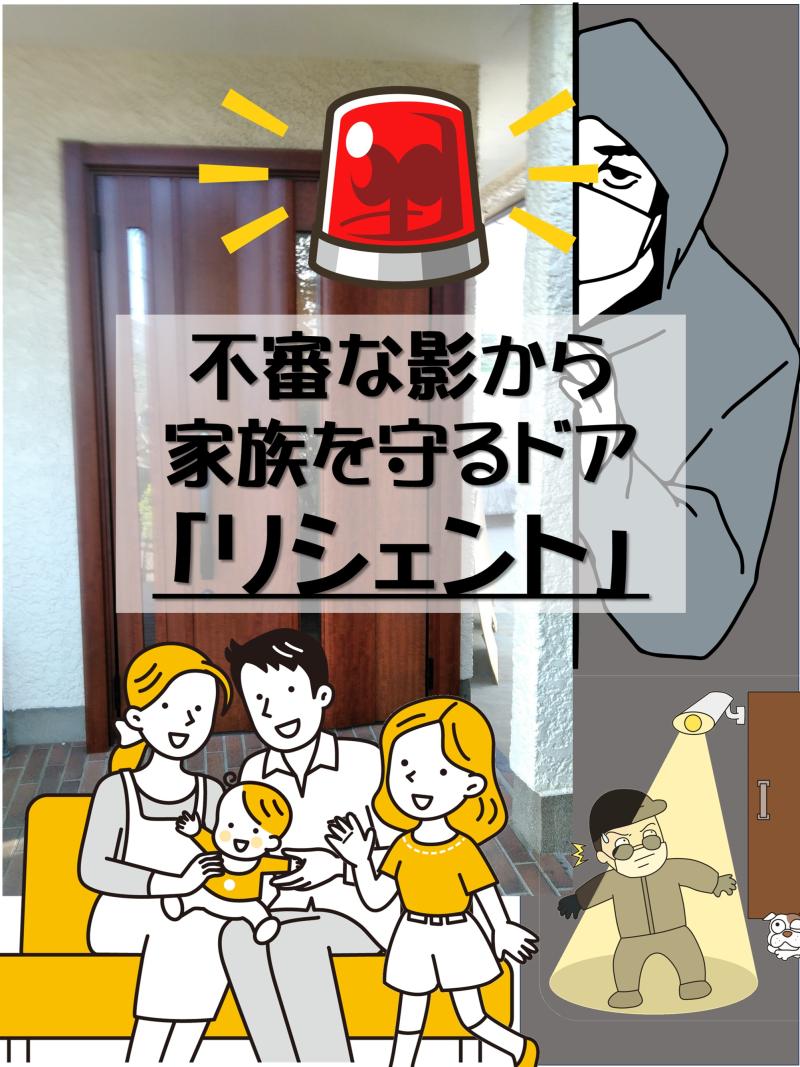 防犯対策で重要な「開口部」の対策。 古いドアは防犯機能がなく、空き巣の標的になりやすいため早めの交換が必須! リシェントはカバー工法で素早く施工! 工...