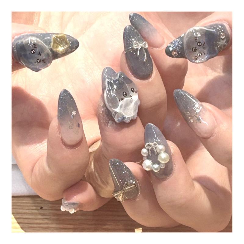 12月はハチワレのボンボンドロップシールでネイルしました💅 クリスマス仕様にハチワレ........ ンかわちい.......₍ᐢ ›...