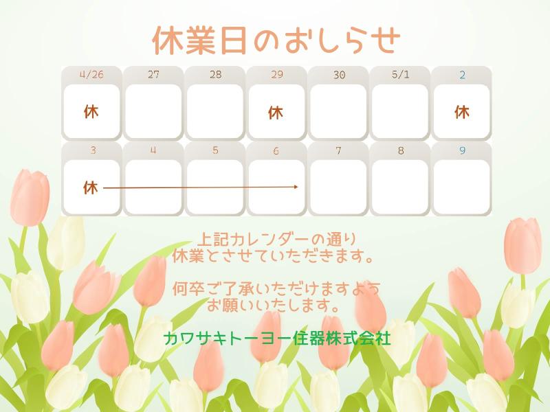 GW休業日のお知らせです。 大変ご迷惑をお掛けいたしますが、 何卒ご理解のほどお願い申し上げます。 ↓お問い合わせはこちら&d...