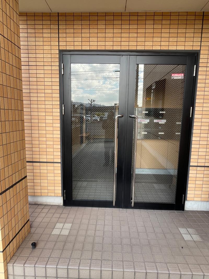 マンションのエントランスのガラスが割れたので修理をさせていただきました ガラスの固定がコーキングなのでコーキング切りガラスを外しました。 新しいガラス...