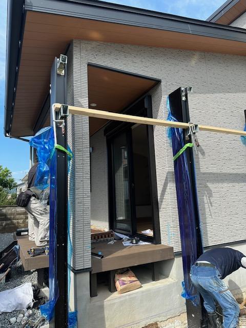 リクシルのスタイルシェードを施工しました。 物干との取り合いで、寸法がシビアでしたが上手く納める事が出来ました。 夏の日差しや目隠しにご検討されてはい...