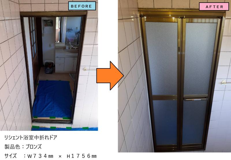 リシェント浴室ドア交換|浴室中折ドア交換|浴室入口リフォーム|大成トーヨー住器(株)|大井付近