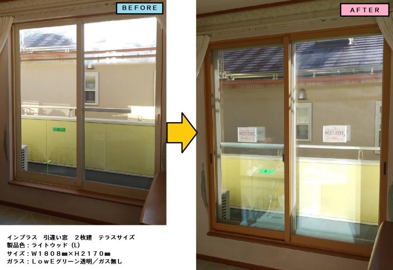 内窓「インプラス」の取付工事をさせて頂きました! 現場 : 小田原市内 BEFORE AFTER 商品 : インプラス 引違い 2枚建 テラス (リン...