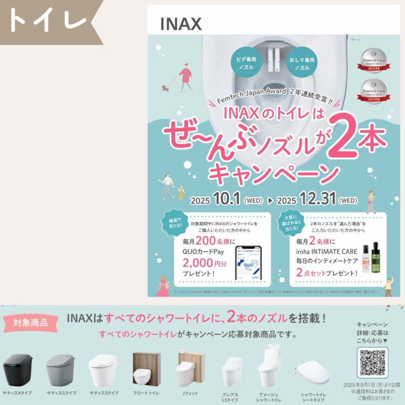 こんにちは♬ 今日は10月スタートのLIXILキャンペーンを ご紹介します✨ 【トイレ】 2025年10月1日~2025年12月31日まで 【キッチン...