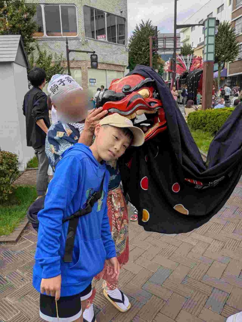 獅子舞フェスティバル 頭を噛んでもらいました
