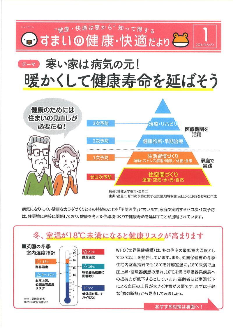 家を暖かくして健康に過ごそう!! 住まいの健康だよりです。