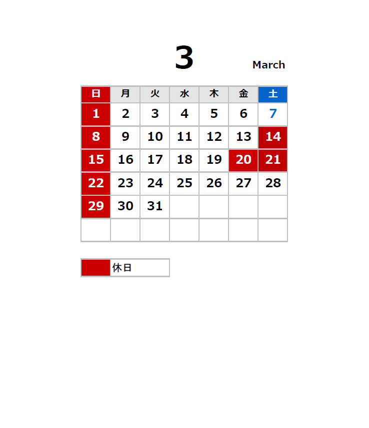 3月営業日のお知らせ