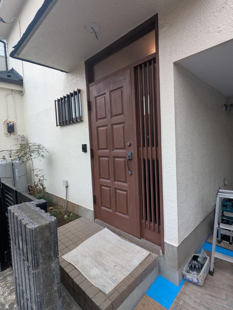 業務の伊藤です。 先日、八王子市内の現場に玄関ドアの取替え工事(カバー工事)に行って来ました。 施工前です。 木製の玄関ドアでしたが劣化の為に塗装が剥...