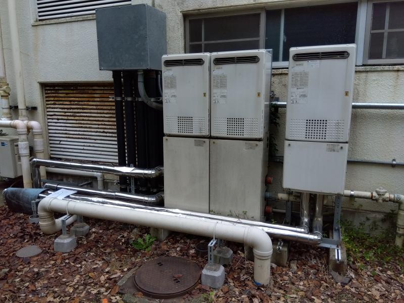 こんにちは、宮本です。 今日は市内の大学の寮でシャワー用給湯器が2台マルチで繋がっておりますが 設置してから18年で、劣化のためお湯が出なくなり交換に...
