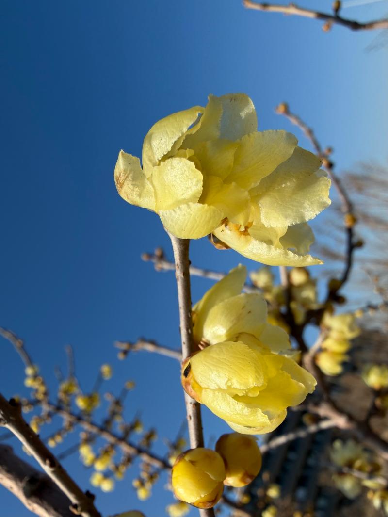 甘い香りがする🌼? 目と鼻を・・・なんじゃ?と、 見渡せば黄色い花を開花させた「蝋梅(ロウバイ)」が目に留まりました。 蝋梅が咲く春なのですね 1年...