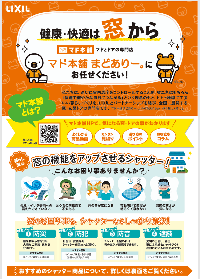 こんにちは 黒子の黒子です 当社オリジナルチラシを配布中です 防犯対策や、台風、飛来物防止に向けて役立つ 面格子、シャッターのチラシとなっておりま...