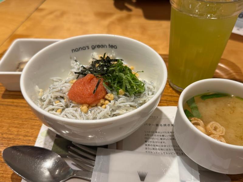 仕事終わりにちょっと寄り道。 久しぶりにnana's grenn teaに来ました🍵 頼んだのは釜揚げしらすと明太子のどんぶり。 明太子が辛...
