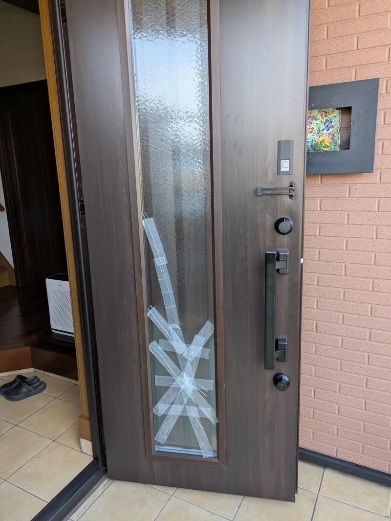 施工前 施工後 玄関のガラスを入れ替えました。綺麗になったので気持ちよく過ごせますね