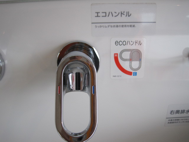 LIXILの洗面化粧台の水栓は写真のようにエコに配慮した物に なっています。真下にすると水、左横にするとお湯が出るように なります。皆様...