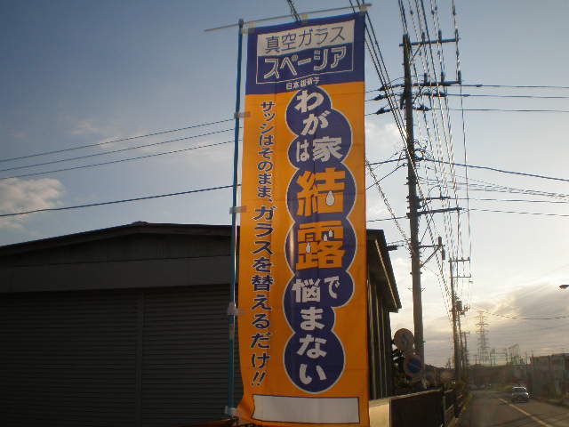 エコガラス・硝子交換のご依頼は、 このノボリ旗のある ㈱新堀建材トーヨー住器へ お気軽に問合せ下さい。