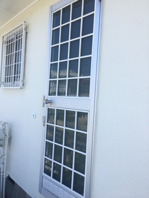 長年お使いになられていた勝手口ドア〜 ※網戸がドアについているタイプでドアを開閉して使うタイプ 開閉がしずらくなり・・・網戸も使いづらくなってきている...
